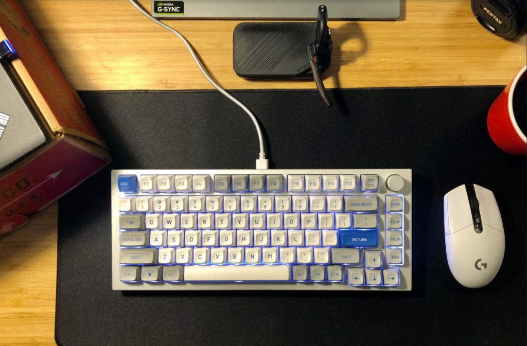 Mousepad/keyboard mat/drink holder all wrapped into one… the convenient desk mat. I prefer around a 12″x24″ desk mat with my 75% keyboard. You may want to opt for a larger size if using a 100% keyboard.