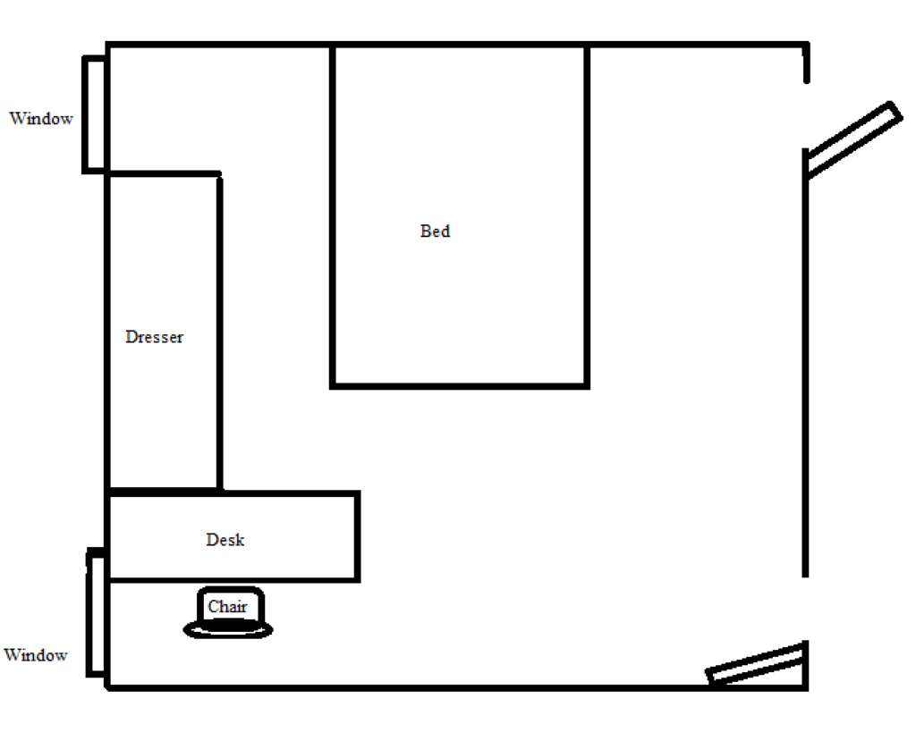 For a bedroom office, I prefer the L-shaped method where the back of the desk is butted up against the longer dresser (creating an L shape). I have around 3 feet of space between the back of my desk and the foot of the bed (hence the blog name: Three Foot Commute). This setup provides the most ideal video background since only a wall is viewable behind me.